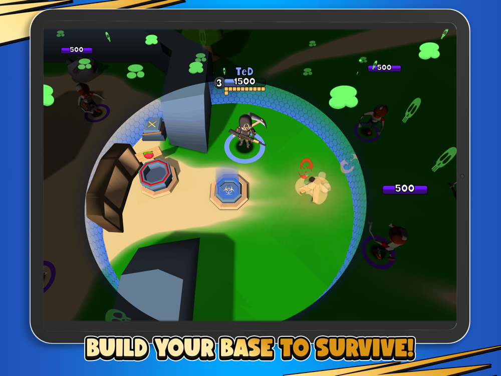 Stürze dich mit deinem Lieblingshelden in die Battle Royale-Arena. Sammle Ressourcen, verbessere deinen Helden und verteidige dich gegen Monster, Zombies und feindliche Spieler! Baue Ausrüstung, Waffen und andere Hilfsmittel, um dein Überleben zu sichern und den Sieg zu erringen!
