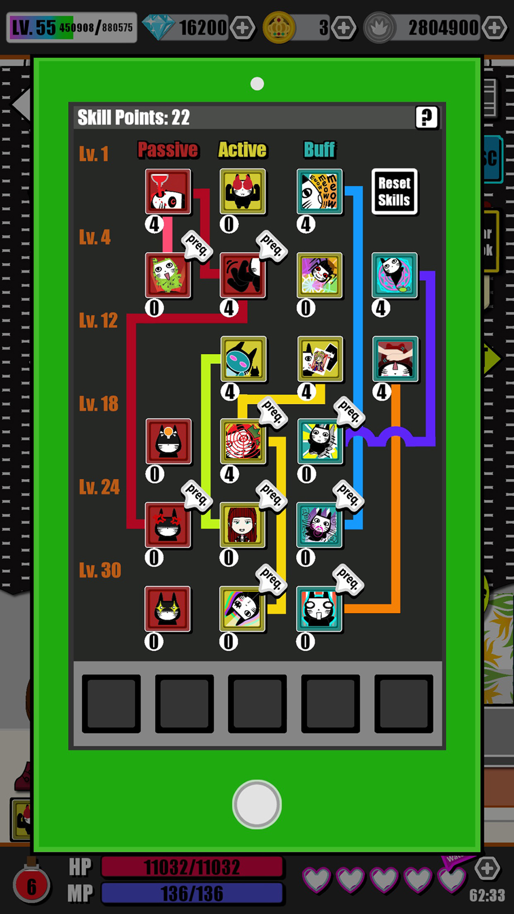 Having the proper skill set in battles is deemed crucial to your success in beating any RPG. So don't you just hate where they make you spend skill points to upgrade a skill only to find out soon you'll never use it again (sorry it's not refundable!)? What a waste. But this won't happen on our watch! In this game you can apply and reset skill points as frequent as you want for free. There are a total of 19 unique skills for you to choose ranging from Passives, Actives and Buffs. Test them all out and see what works best for you. You'll be tempted to use different skill sets in different situations because they are just that good and fun to use! You can change up your pre-selected skills anytime, anywhere. Yup! Even during battle!