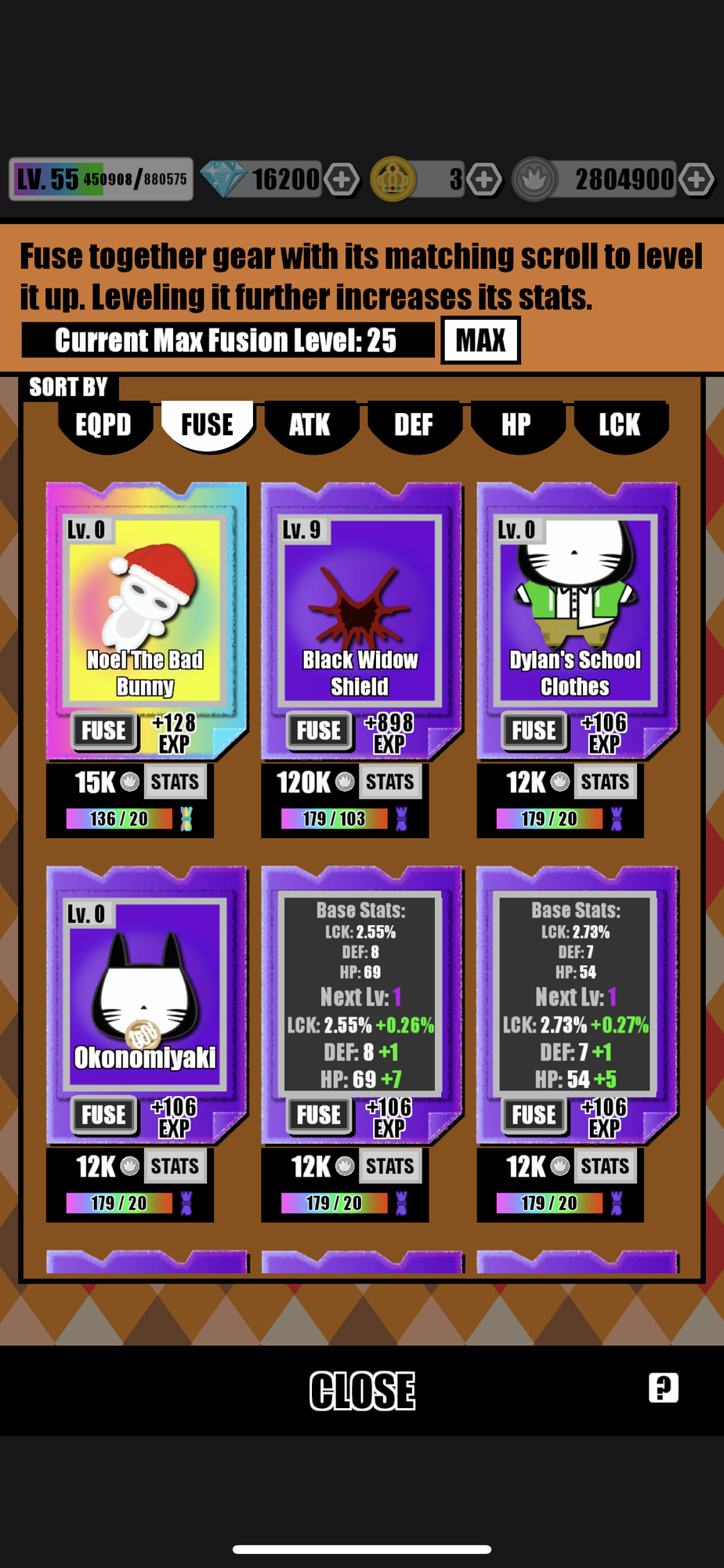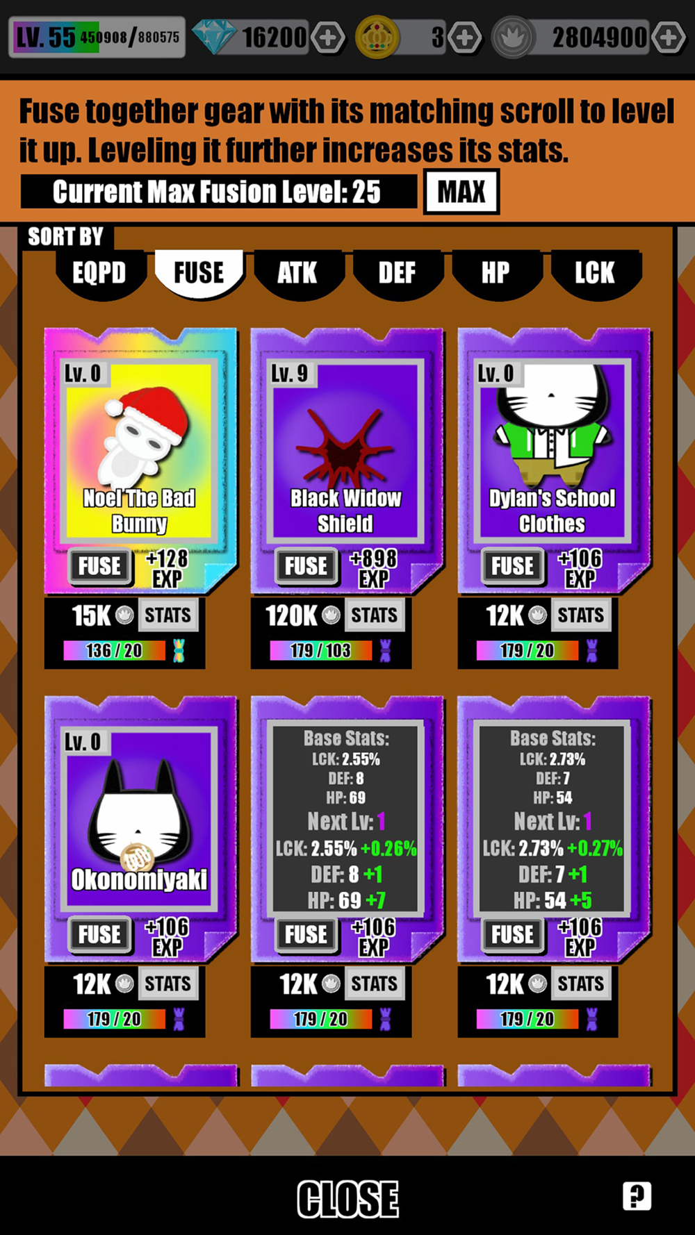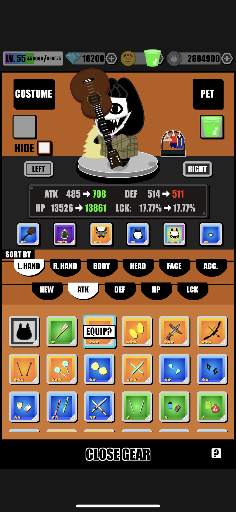 And what, are you going to use your fists to fight all those Soul Pops? No way! There are over 200 unique gear and 30+ costumes to equip. Each piece of gear comes with random stats and changes how your CAT looks. Yup! What you equip is exactly what you'll see CAT wear in battles. You know in other games when you have a weak piece of gear that looks really cool and you want to wear it? We won't make our players take a stat hit for wanting to look hot while they slay. Our wardrobe function allows you to doll up how you want without affecting your stats. Don't love the look of that costume but want to keep the stat bonus? You can easily "hide" it with the click of a button.