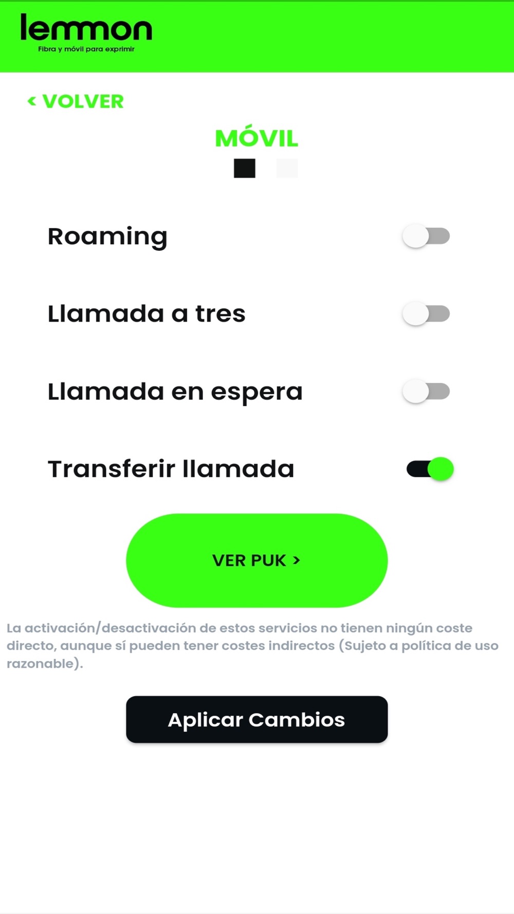 Controla tu linea de lemmon, tus datos, llamadas, roaming, servicios ...