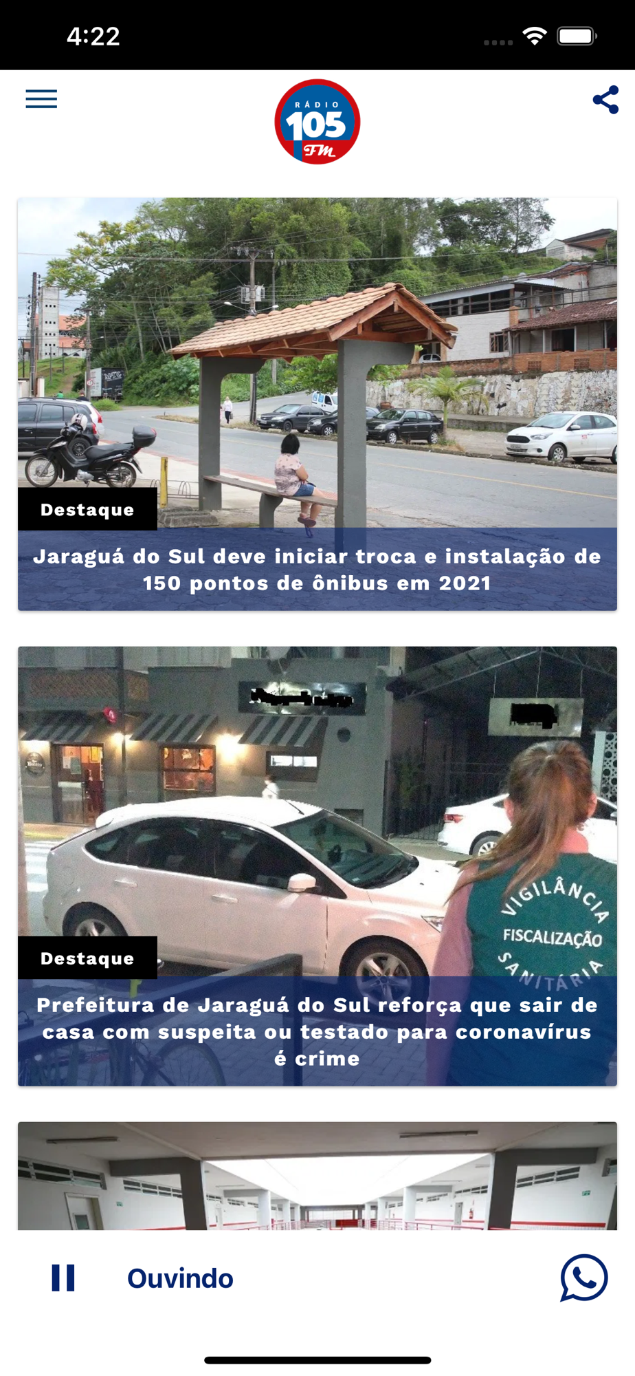 A Rádio 105 FM é lider absoluta em audiência em Jaraguá do Sul e Região. Com a maior cobertura do Norte de SC, tem programação popular adulto, tocando as maiores sucessos regionais, nacionais e internacionais. Com programação interativa os locutores levam ao ouvinte durante as 24 horas dia muito alto astral, prêmios e informações. Pioneira em mídias alternativas, é a primeira rádio FM catarinense a estar no IPHONE 105 FM, a maior rádio do norte de SC, aqui a diferença é a musica