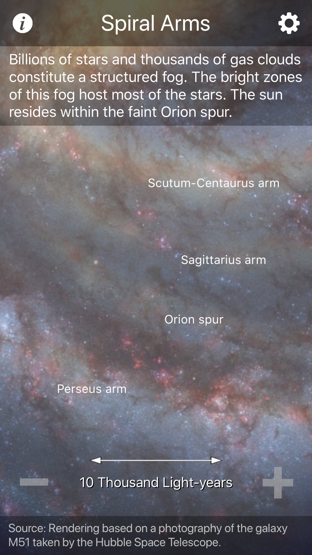 Where possible, the app displays real photographs obtained with modern objectives, telescopes, and microscopes. Other views are phenomenal renderings of state-of-the-art computer models.