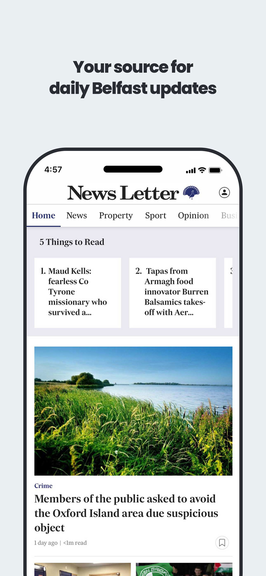 The News Letter newspaper app is home to all the news, lifestyle, sport and opinion that matters in Northern Ireland. It also brings you a full colour digital replica of our trusted newspaper presented in pristine detail and designed to be enjoyed on your smartphone or tablet device.