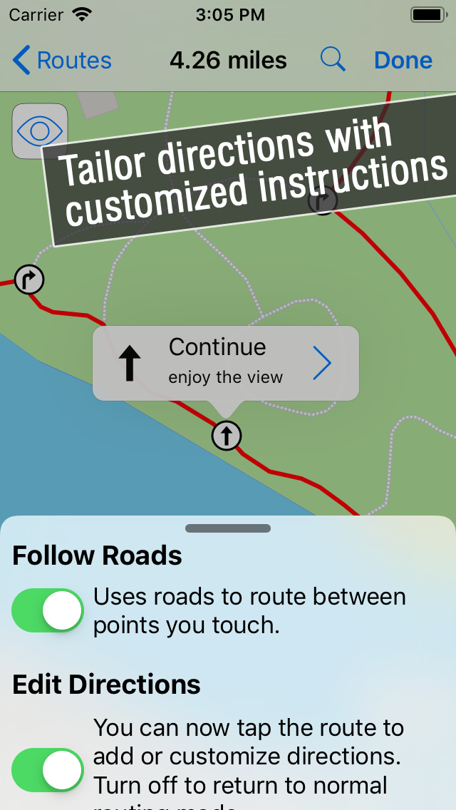 • Enable iCloud to make routes on your iPad and sync them to your iPhone