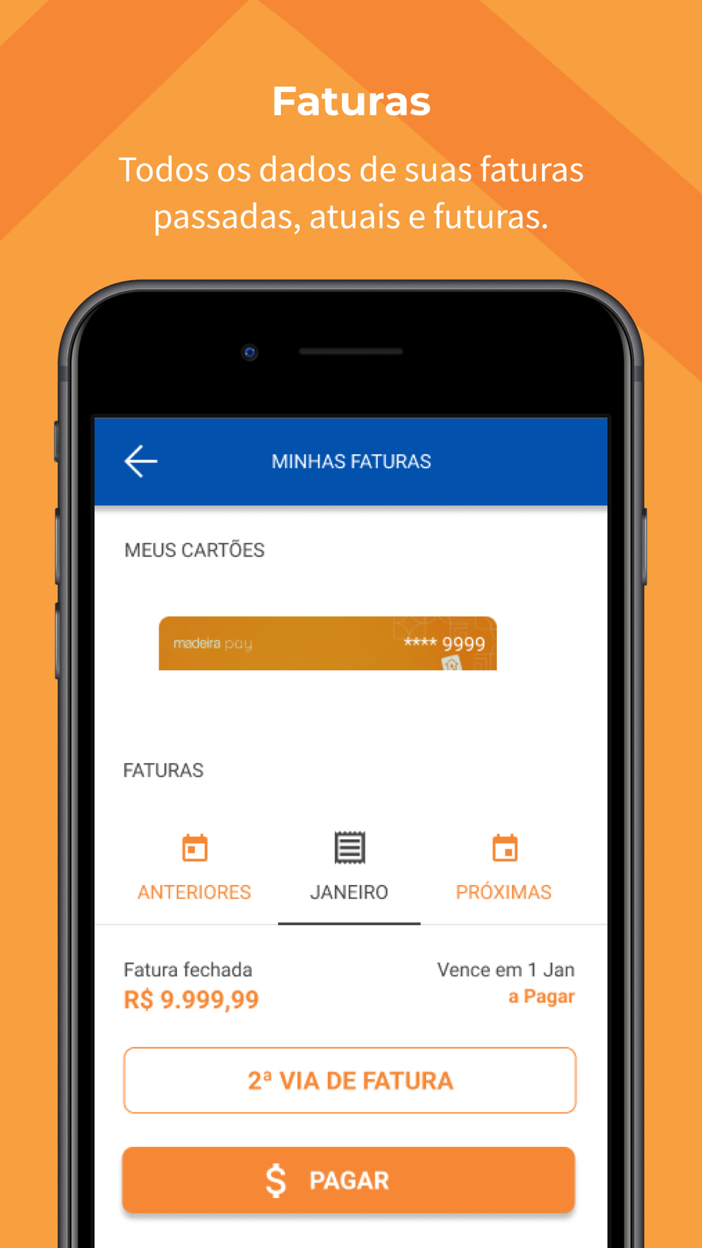 • Ver detalhes das faturas e gerar boleto para pagá-las;