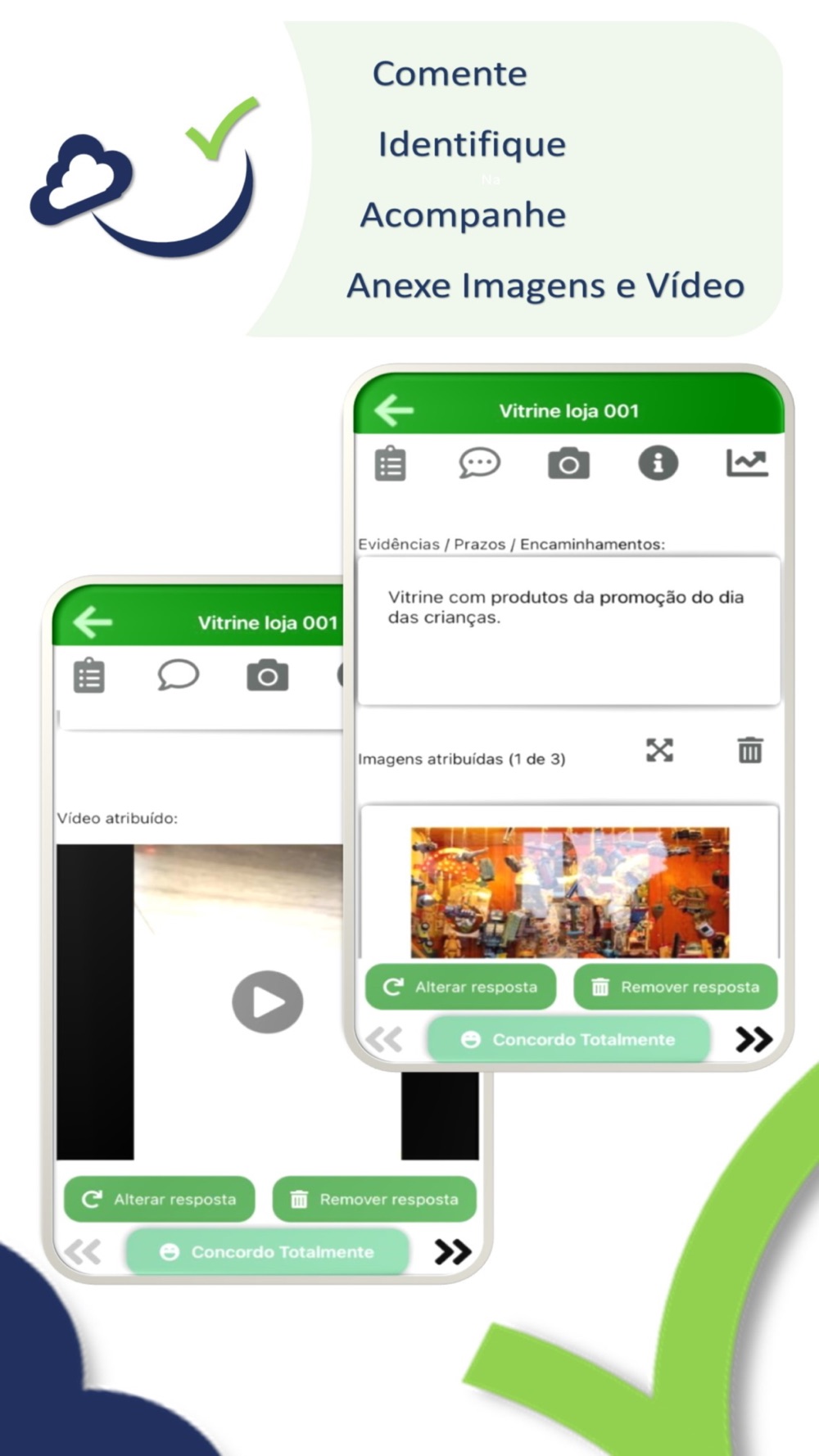 - Em cada checklist é possível informar, comentar, identificar, anexar imagens e vídeo, avaliar, planejar, identificar ajustes, acessar rapidamente a questão desejada, acompanhar o preenchimento e ter uma visão resumida;