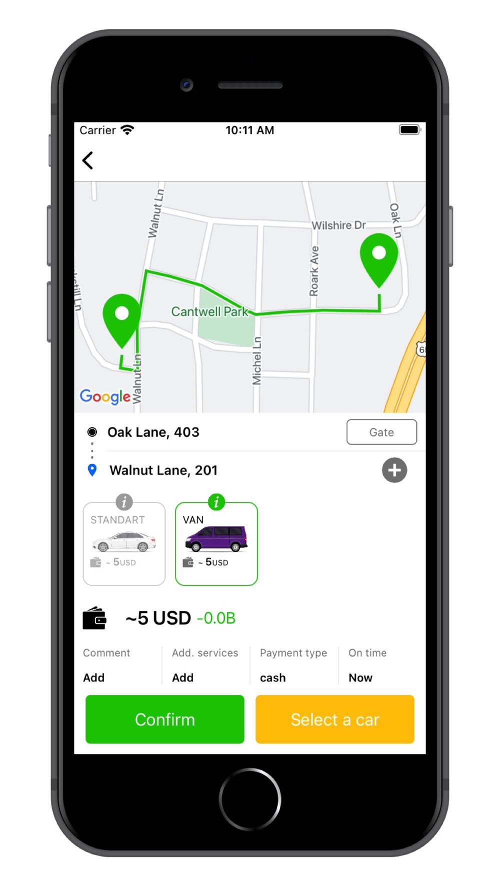 No standing in the rain. Track your car as it arrives on a map, or call the driver when he/she is nearby. No more guessing where your cab might be.