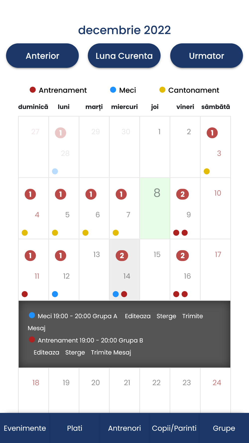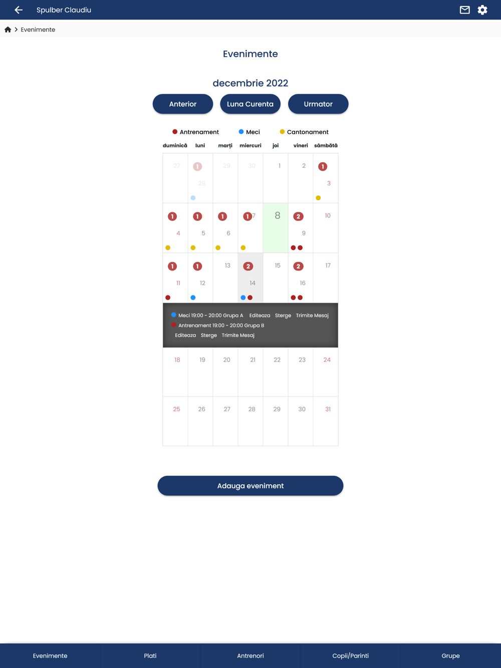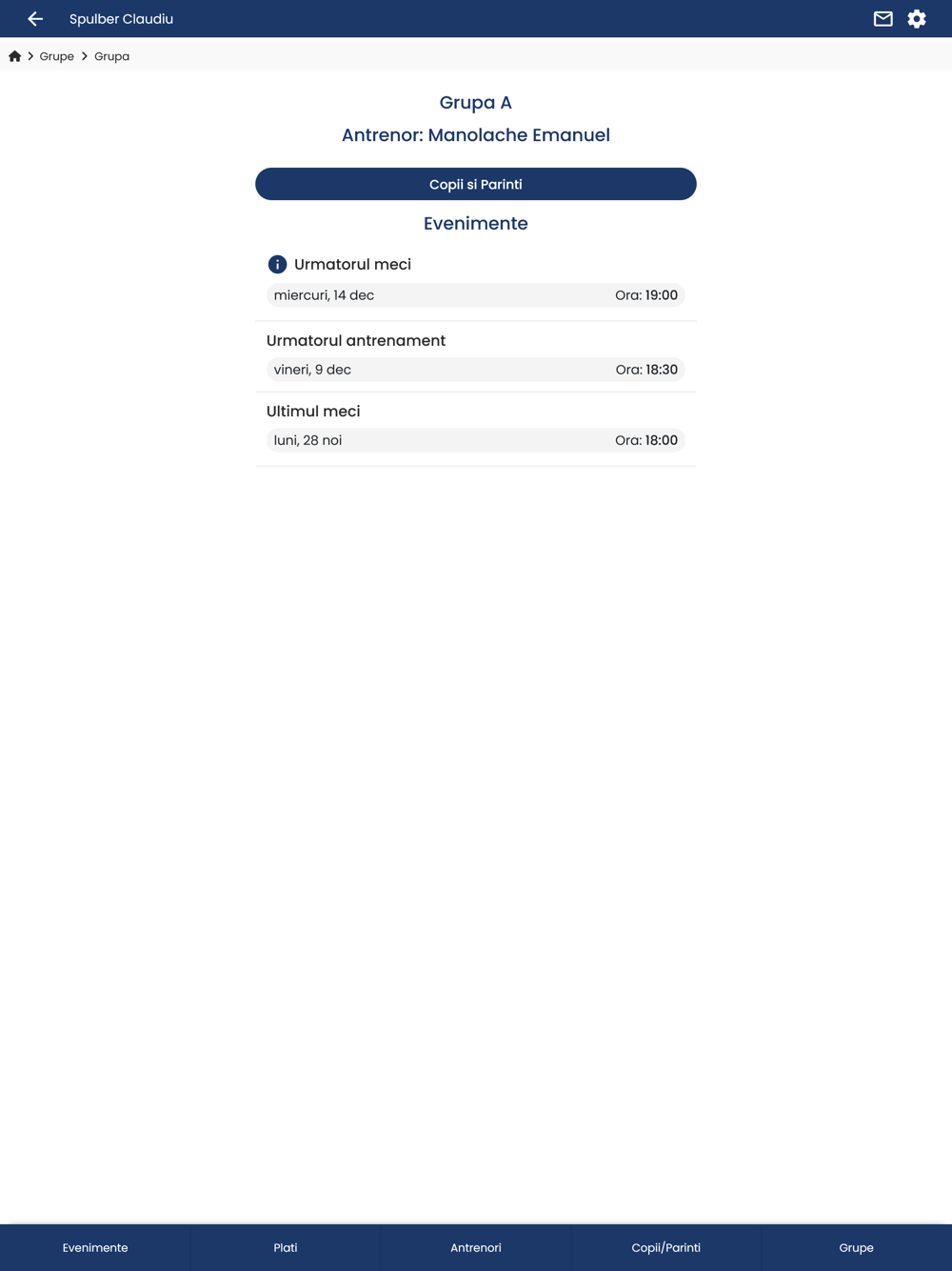 Manage your sports club easier. Keep track of your coaches, enrolled children and their parents. Put them in groups, assign them to events and send them messages.