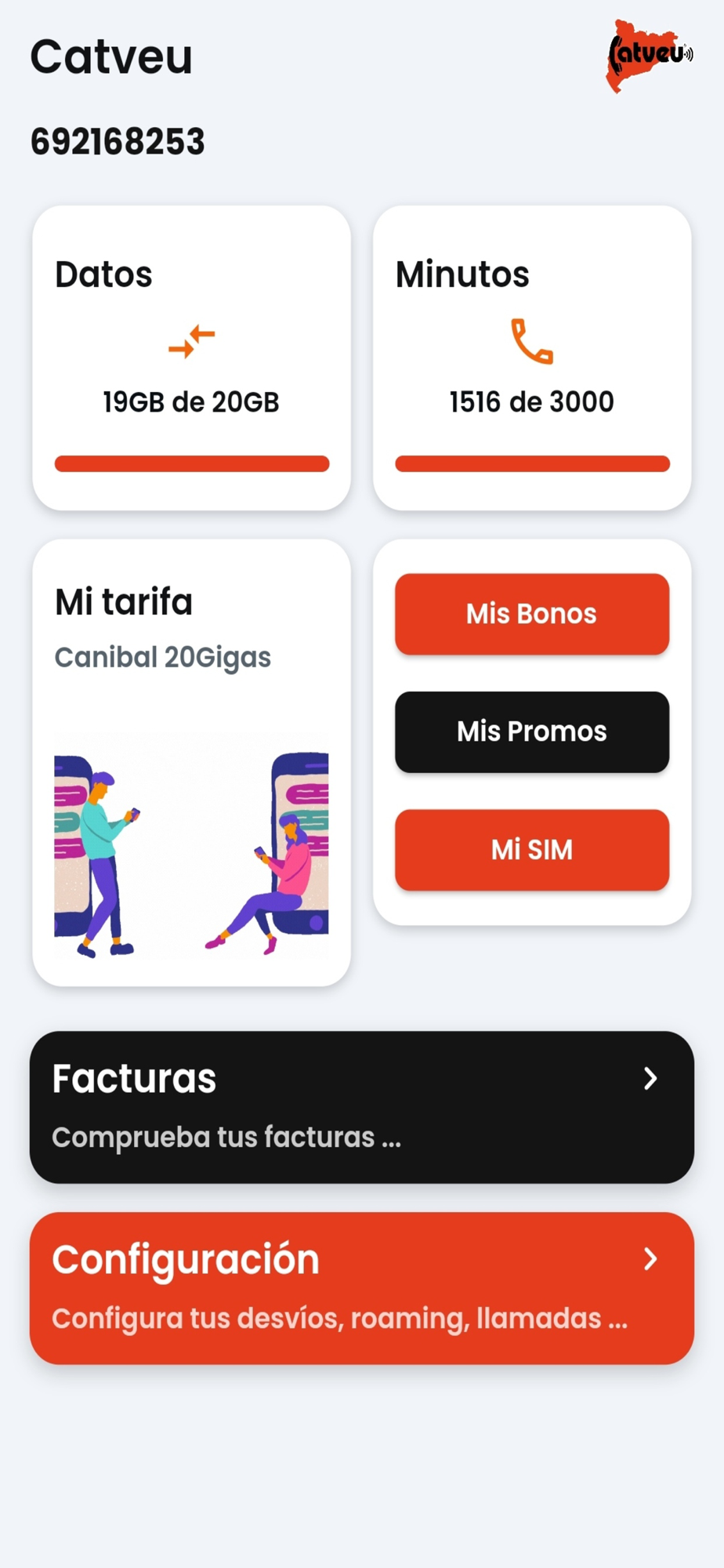 - Controla el consumo de datos, voz y sms.