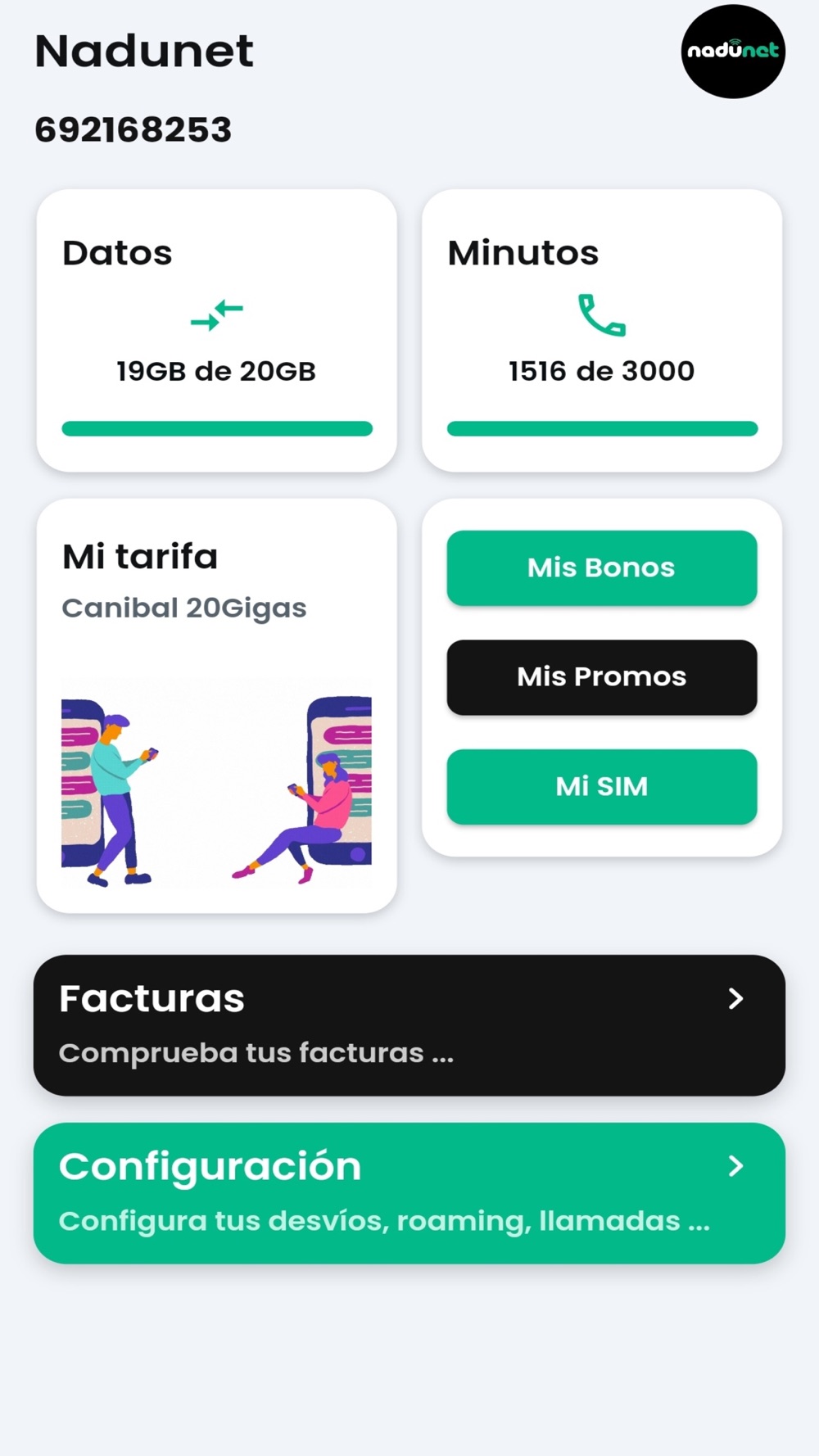 - Controla el consumo de datos, voz y sms.