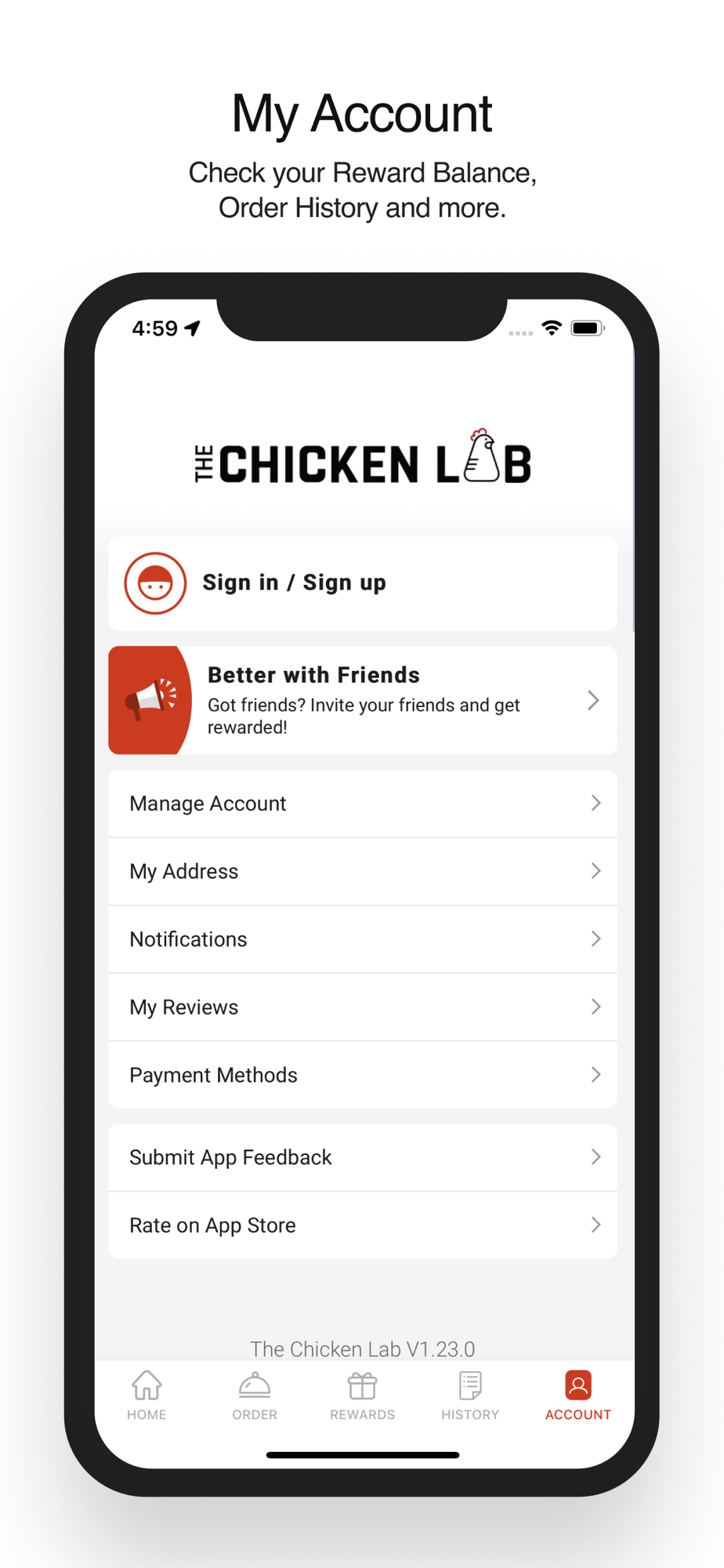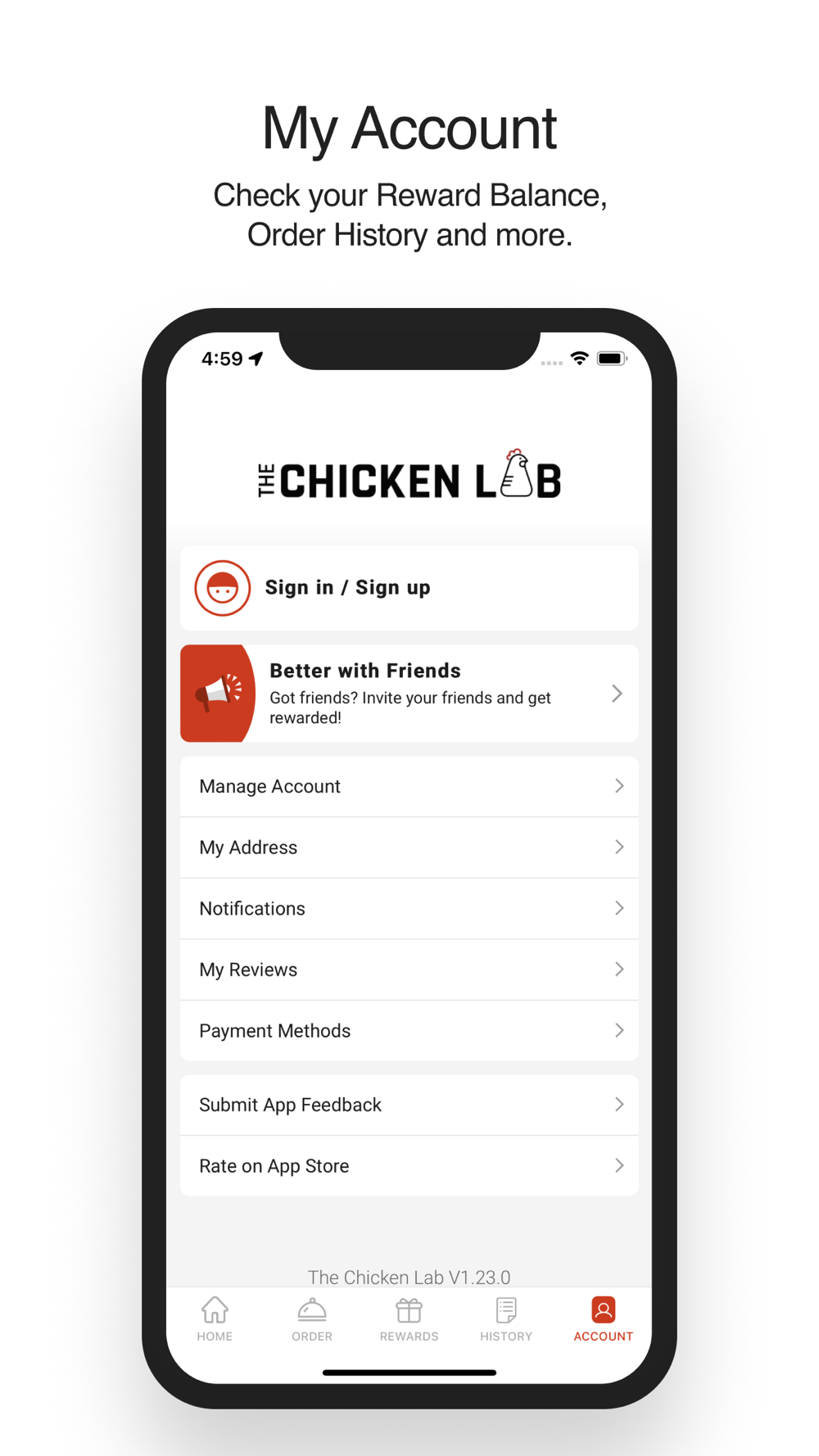 Check your Reward Balance, Order History and more.