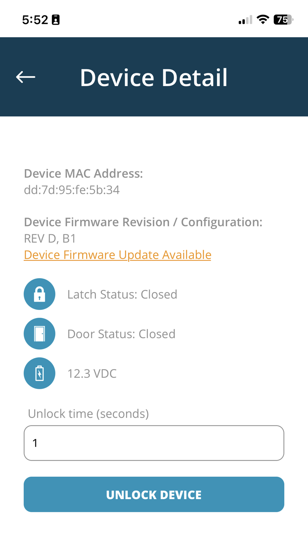 Easily test unregistered Southco Bluetooth devices before they are sent to the end user. Check sensor status, unlock the device, and upgrade the device firmware all before any user registers it on their app. Perfect for installers or quality technicians to validate installation before shipping a product to an end user.