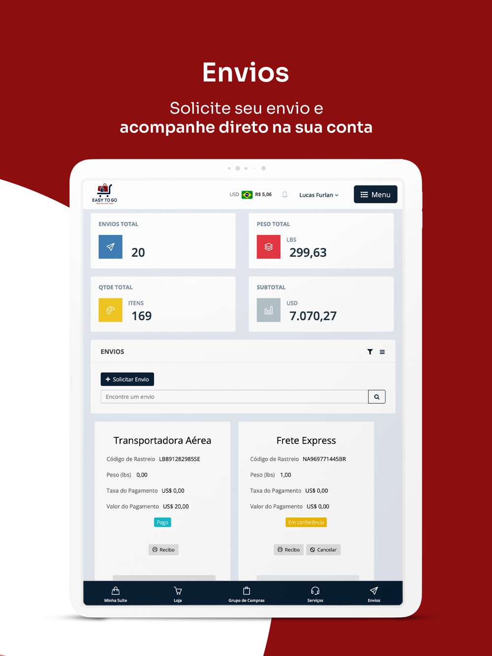 O app EASY TO GO é uma plataforma que permite gerenciar suas compras por meio de nossos serviços de personal shopper, grupo de compras e loja virtual, além de possibilitar o redirecionamento de encomendas.
