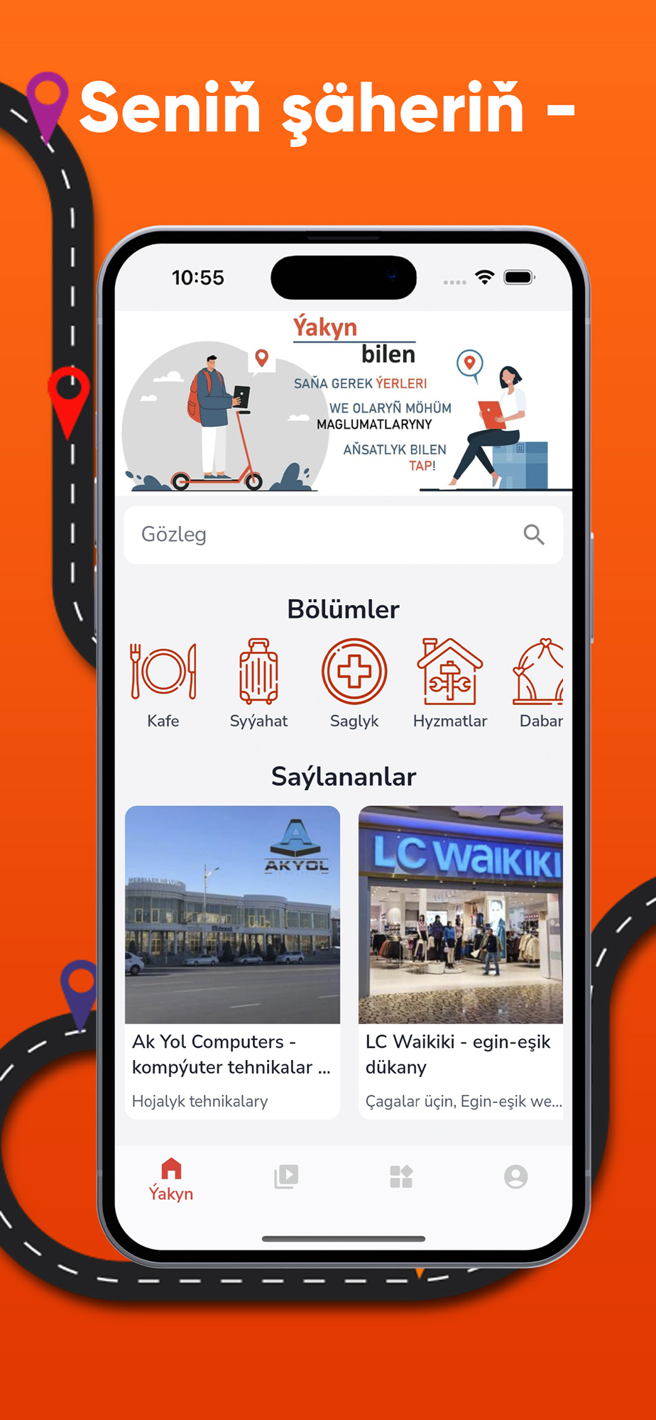 Ýakyn – это сайт и приложение об объявлениях и детальной информации заведений (Маркеты, Кафе, Аптеки, Магазины, ВУЗы, Фото и Видео студии, и т.д.). Платформа поможет найти оптимальный вариант, людям, которые хотят отдохнуть, купить продукты или воспользоваться услугами. Так же поможет, администрациям заведений совершенствовать свои слабые стороны и исправить изъяны по отзывам посетителей и покупателей.