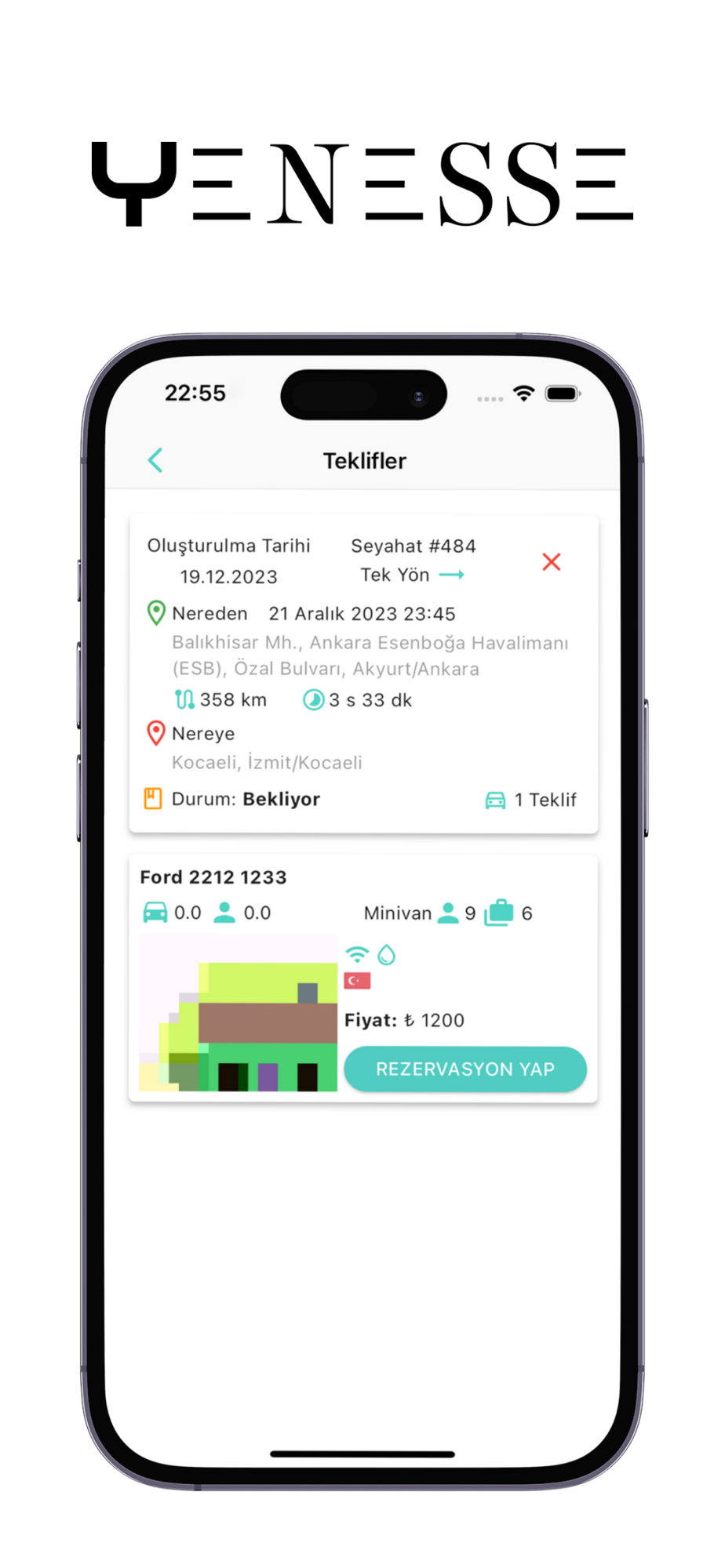 Yenesse, Türkiye çapında hizmet veren ve seyahat/taşımacılık konusunda yeni nesil anlayışlar benimsemenize yardımcı olan bir uygulamadır.