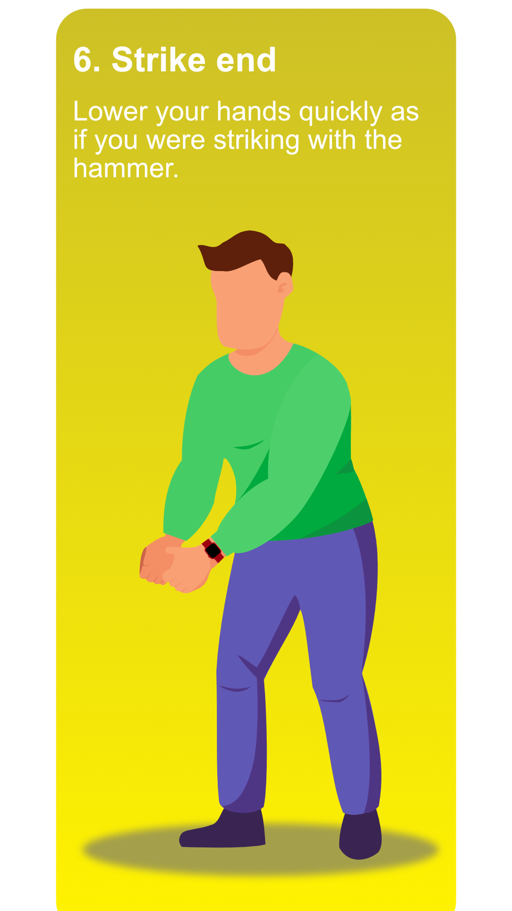 5. Clasp your hands as if you were holding the hammer and raise them to gain momentum for the strike.