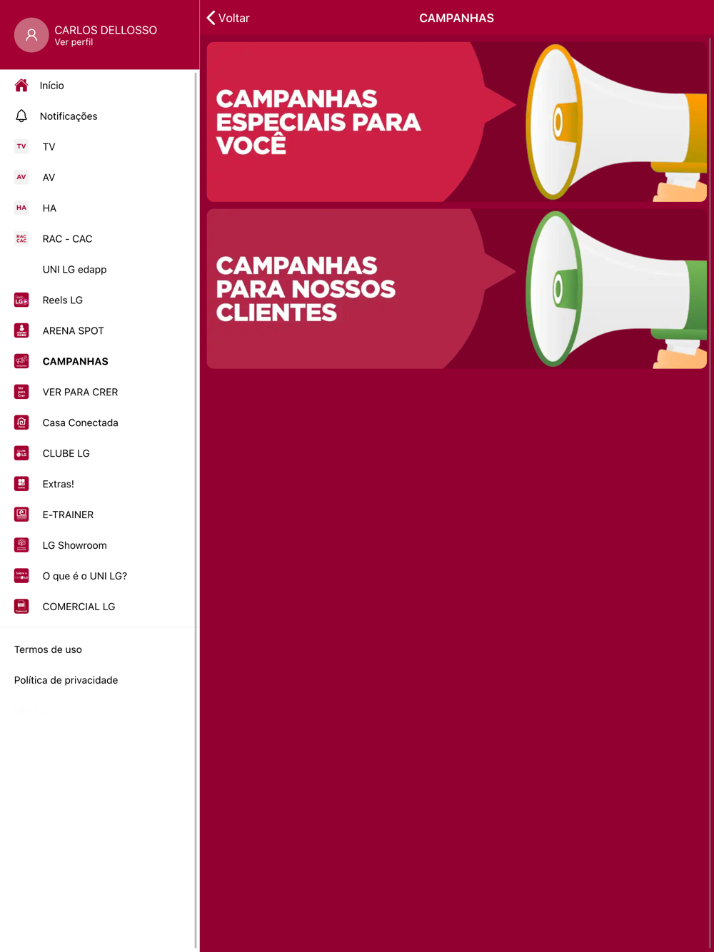 Aplicativo para o time de instrutores visualizarem todo os conteúdo dos produtos da LG.