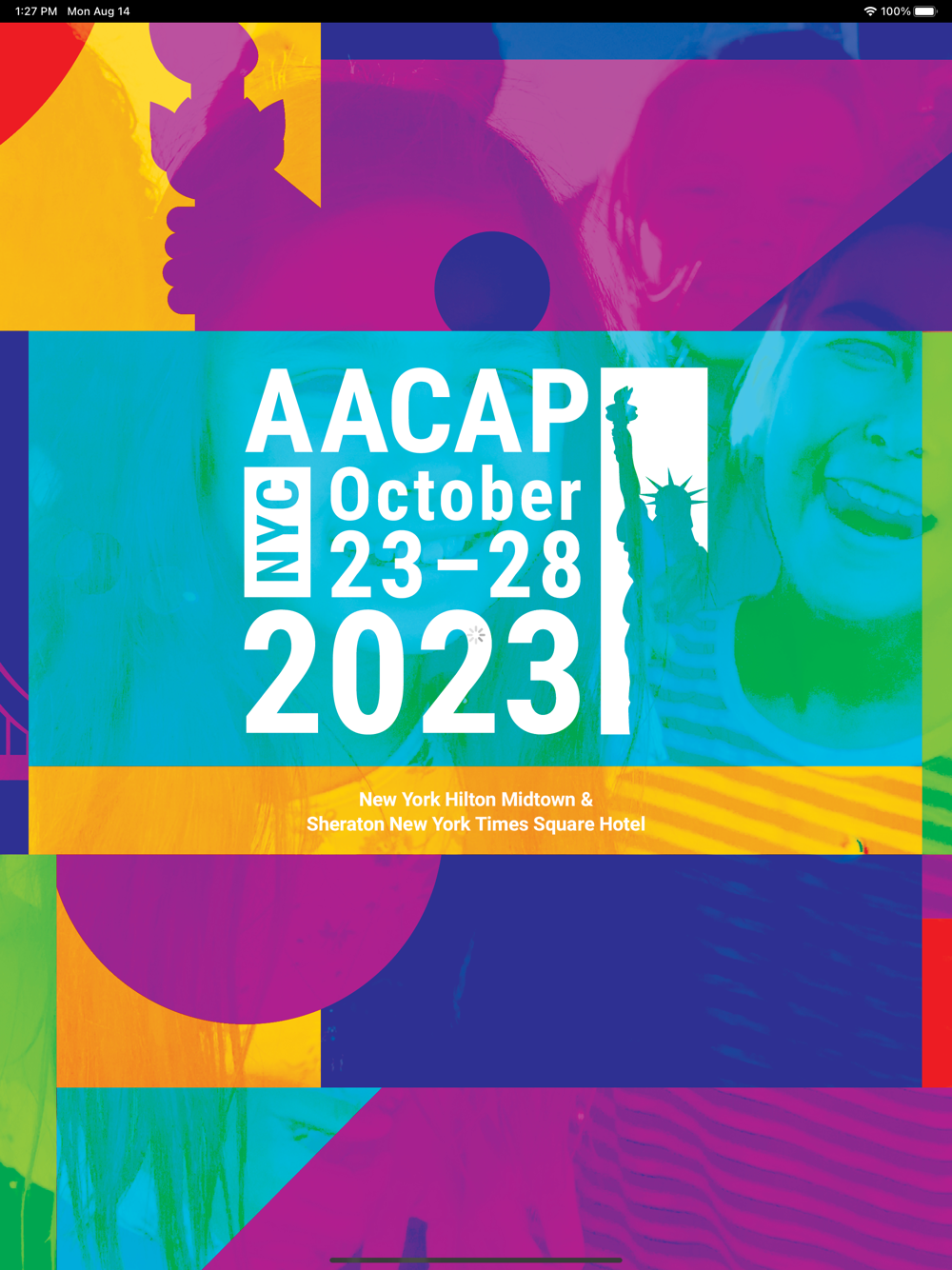 AACAP's 70th Annual Meeting will be held on October 23rd-28th, 2023, in New York, NY. Login to view Sessions and Papers saved as favorites. View schedules, locations, floor plans, and people. Attendees will now be able to facilitate their experience at the meeting using the mobile app.