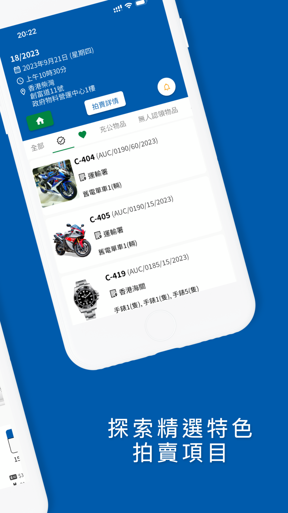 - 及時通知:透過推送通知,獲悉即將進行的公開拍賣