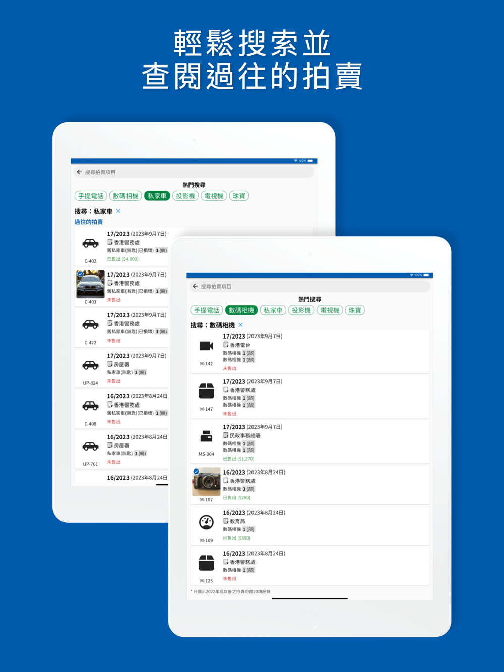- 過往記錄:輕鬆查閱過往的拍賣資料作為參考