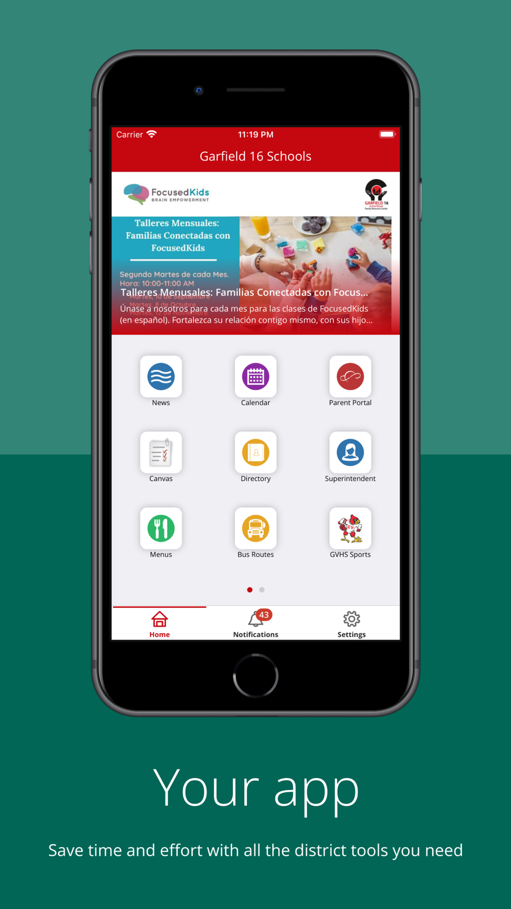 The official Garfield 16 Schools app gives you a personalized window into what is happening at the district and schools. Get the news and information that you care about and get involved.