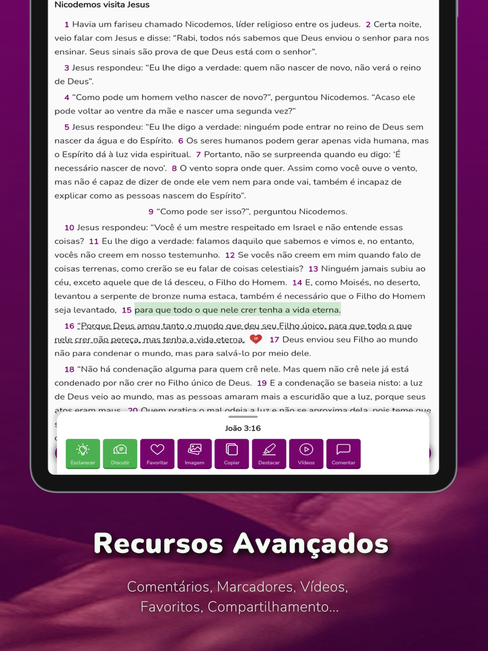 Recursos Avançados de Leitura - Marque, favorite, comente, veja vídeos, ouça áudio e muito mais;