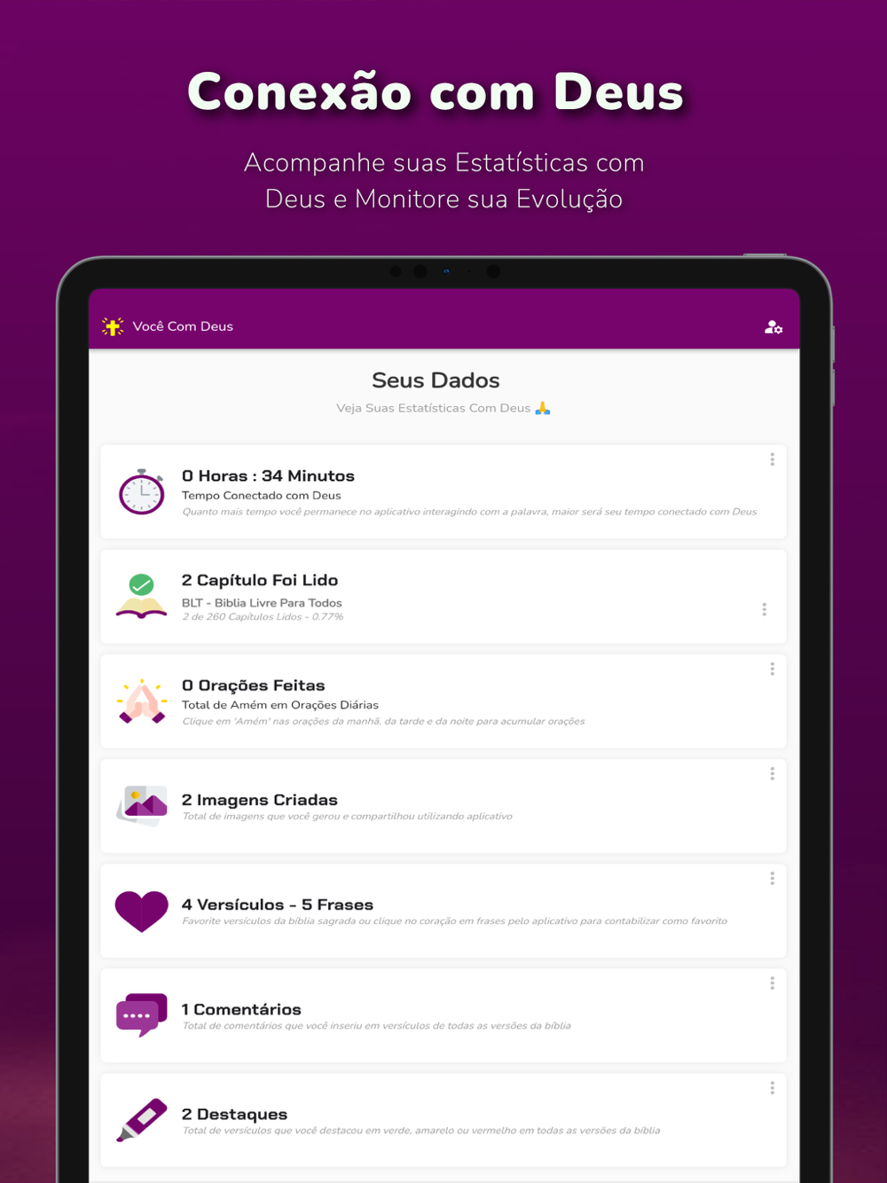 Estatísticas com Deus - Você acompanha sua conexão com Deus e seu evolução diária;