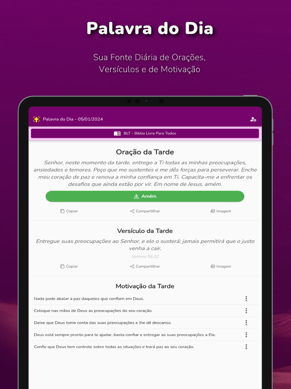 Palavra do Dia - Orações, Versículo e Motivação diárias. Novos texto de manhã, a tarde e a noite;