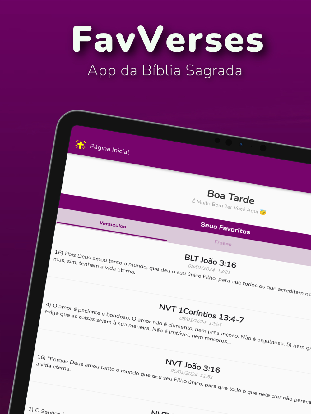 Bíblia Sagrada - FavVerses - é um aplicativo Moderno, Grátis e Online pelo qual você tem acesso à diversas versões e tradução da Bíblia Sagrada, além de ter acesso à ferramentas e recursos avançados para seus estudos bíblicos. Trabalhamos para que você tenha acesso os textos mais atualizados da bíblia, tanto online ou quanto offline.