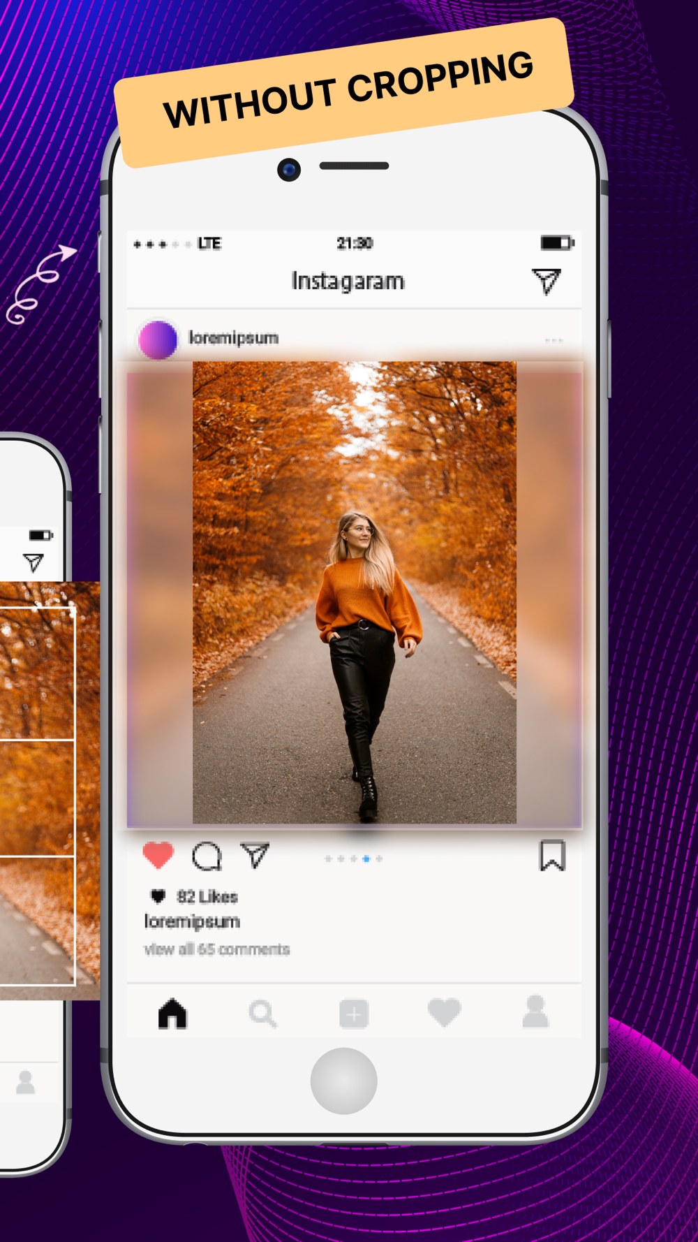 Make your photos eye-catching by adding colorful & blurred background patterns to your photos. With our app, you can immerse your images in a world of vibrant colors and captivating backgrounds. Choose from a rich spectrum of colors to perfectly match your post’s aesthetic or take it a step further by adding gradient or image backgrounds with a mesmerizing blur effect. Elevate your images and express your personality and creativity. Your photos will never look dull with eZy No Crop for Social Media.