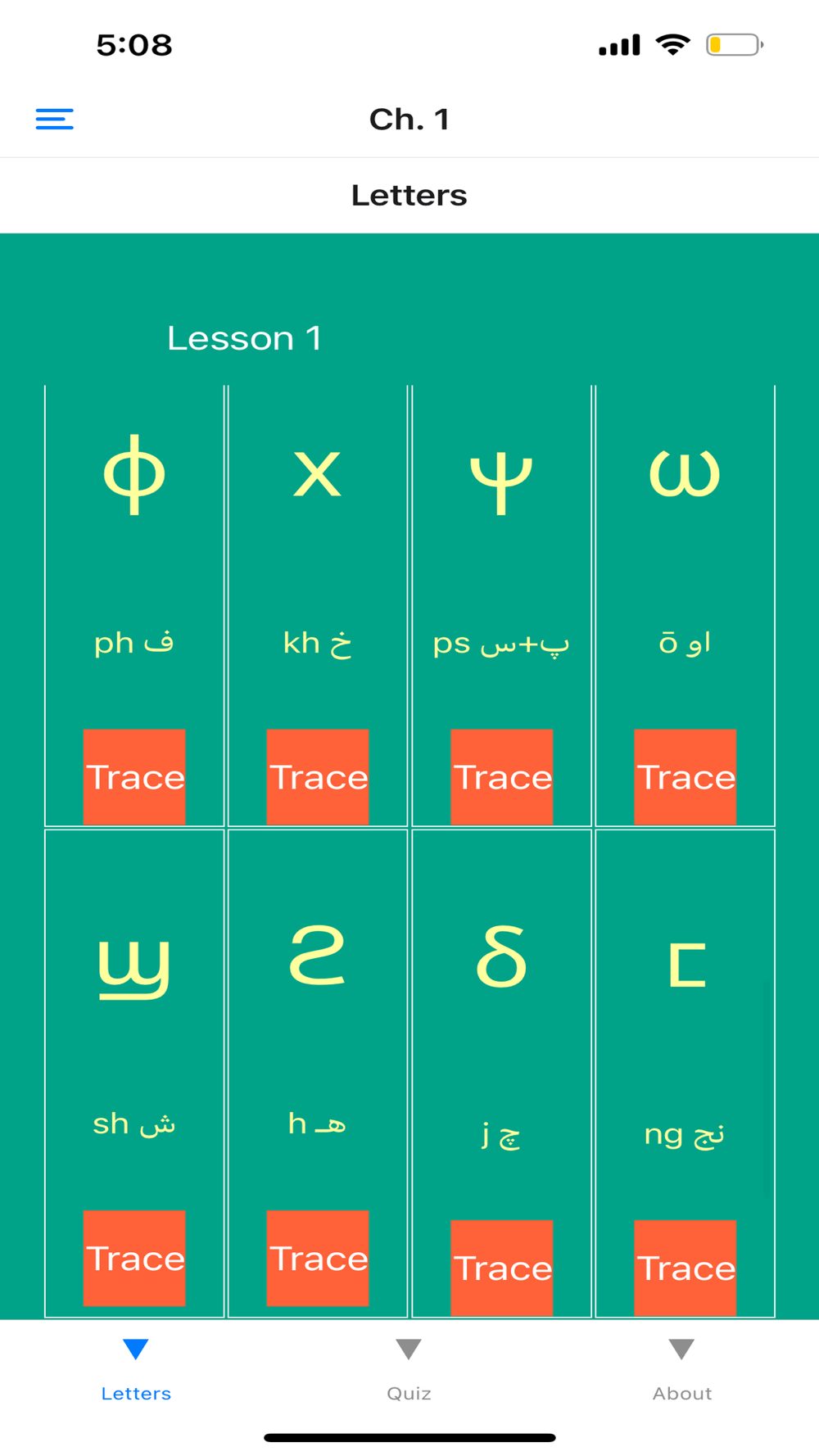 You can also look at the vocabulary and phrase lists for each lesson and quiz yourself on those specifically. There is a tracing function to help you practice writing.