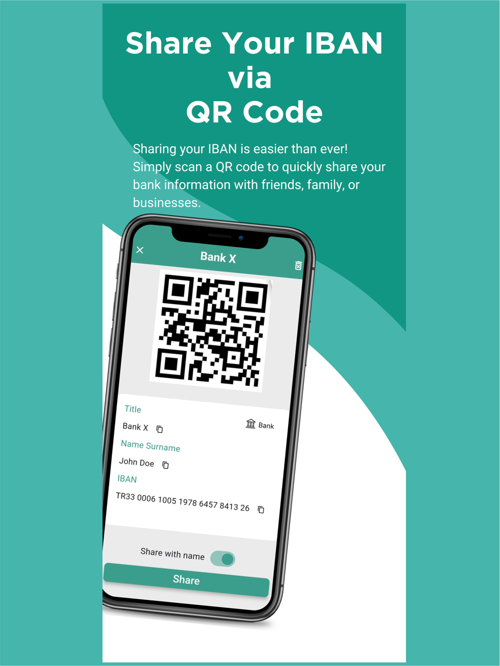 "IBAN & Card" allows you to easily store and share your IBAN and card information. Your data is protected by a password, ensuring only you can access it. Store sensitive information securely and share it whenever needed with just a few taps.