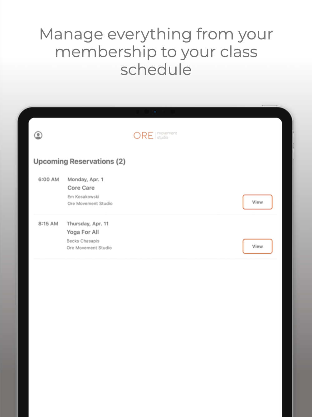 Making your Ore membership easier. Manage everything from your membership to your class schedule.
