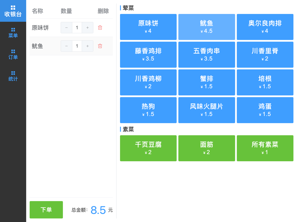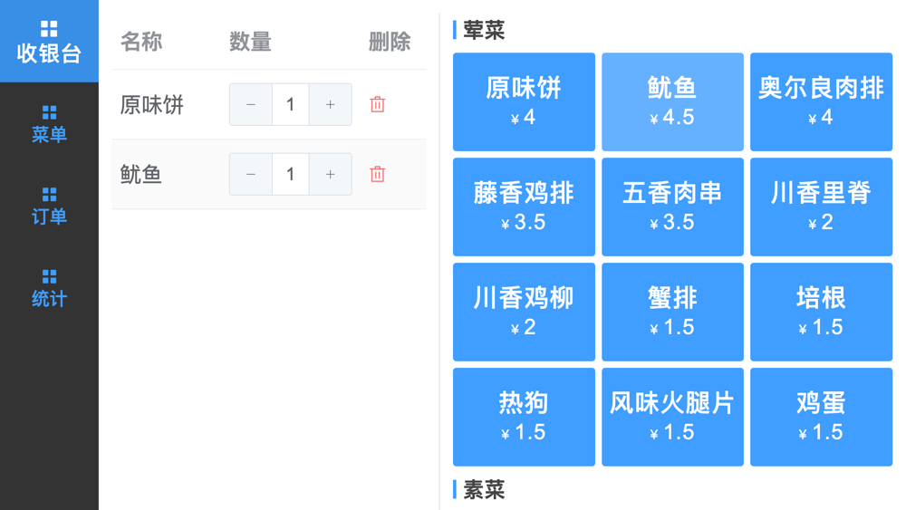 The offline order calculator contains product management, order management, and order statistics functions: