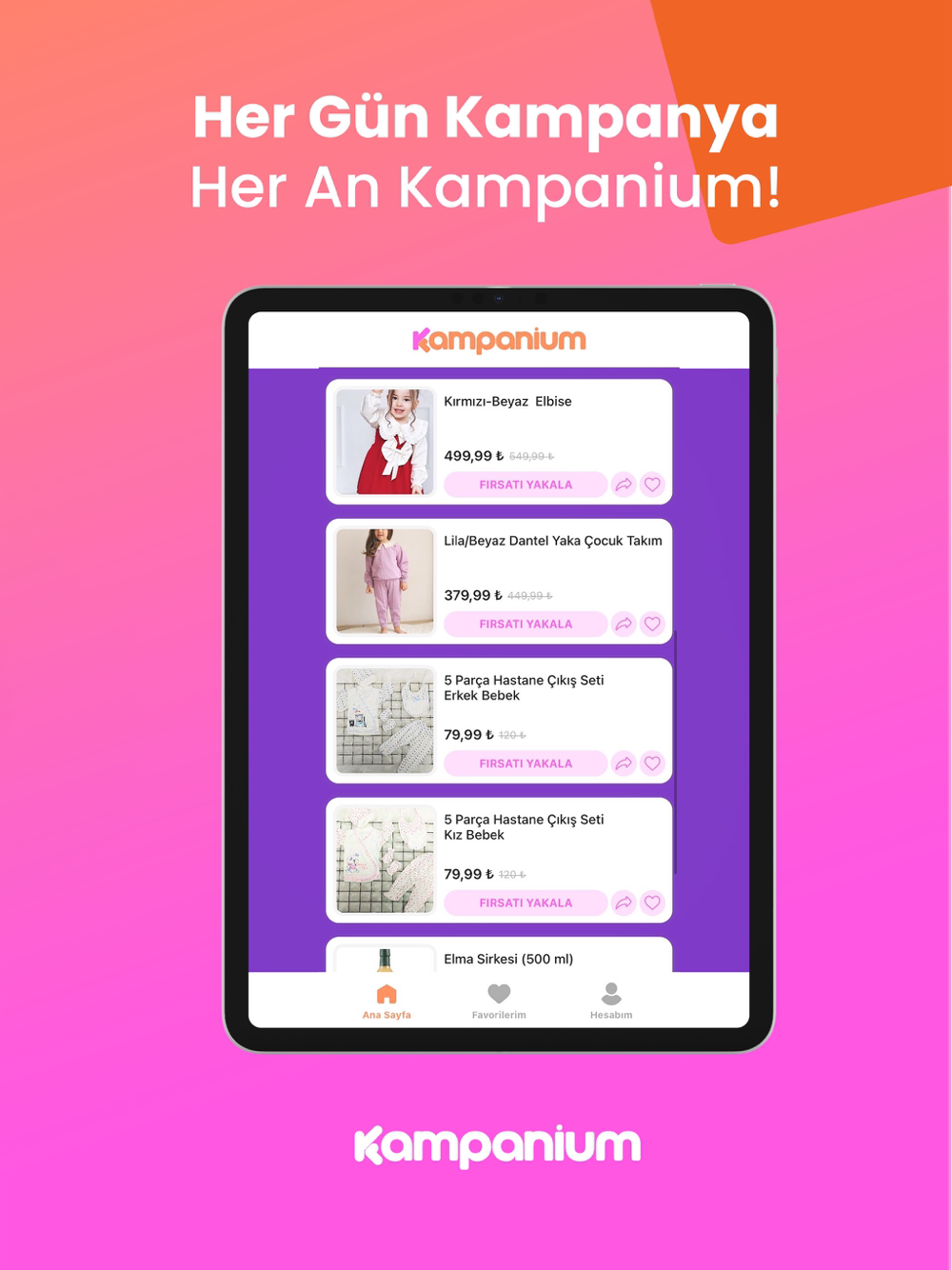 Heyecan verici haber! Kampanium artık yayında ve alışveriş deneyiminizi tamamen değiştiriyor! Artık favori ürünlerinizdeki en sıcak indirimleri anında cebinizde hissedin. Kampanium, güvenilir tedarikçilerin harika kampanyalarını size ulaştırarak, alışverişinizi daha keyifli hale getiriyor.