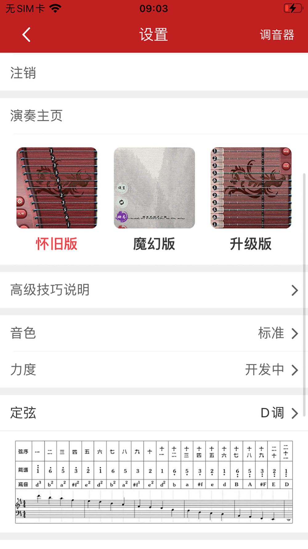 首页虚拟了古筝界面,模拟古筝21弦音调