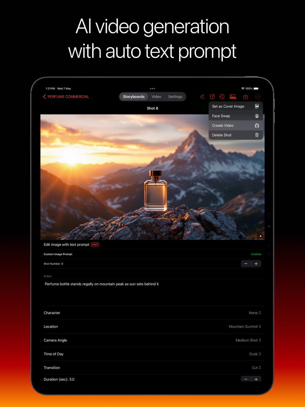 - Génération de visuels à l'aide d'invites textuelles personnalisées ou d'invites générées automatiquement à partir des détails de la prise de vue (angle de prise de vue, éclairage, etc.).