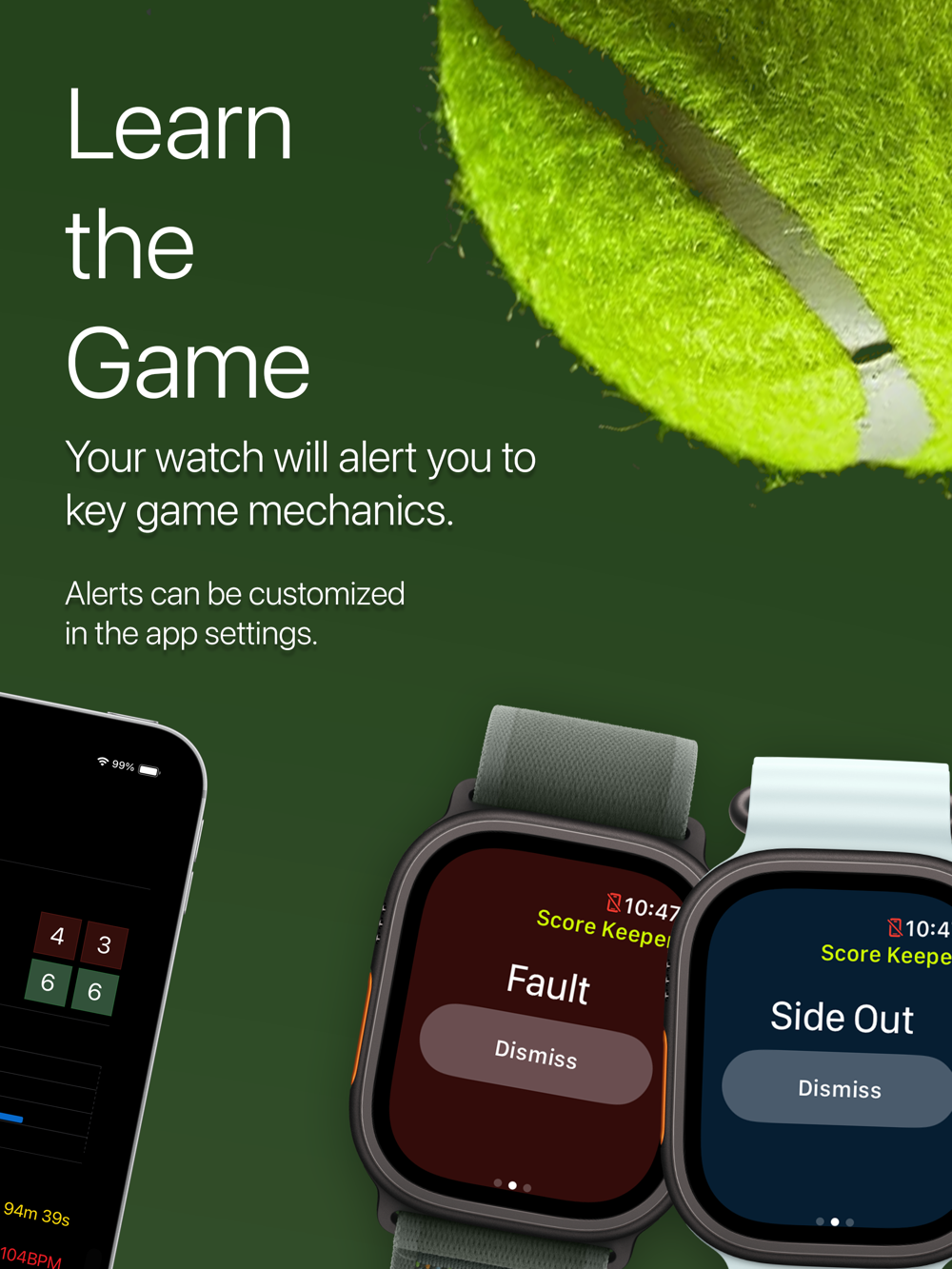 Keep score of your matches with a simple and intuitive tap of your finger between rallies.