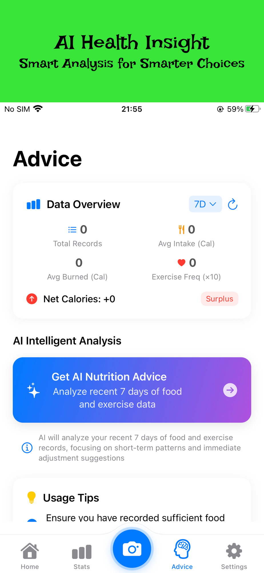-Comprehensive Tracking: Supports both food intake and exercise burn tracking.