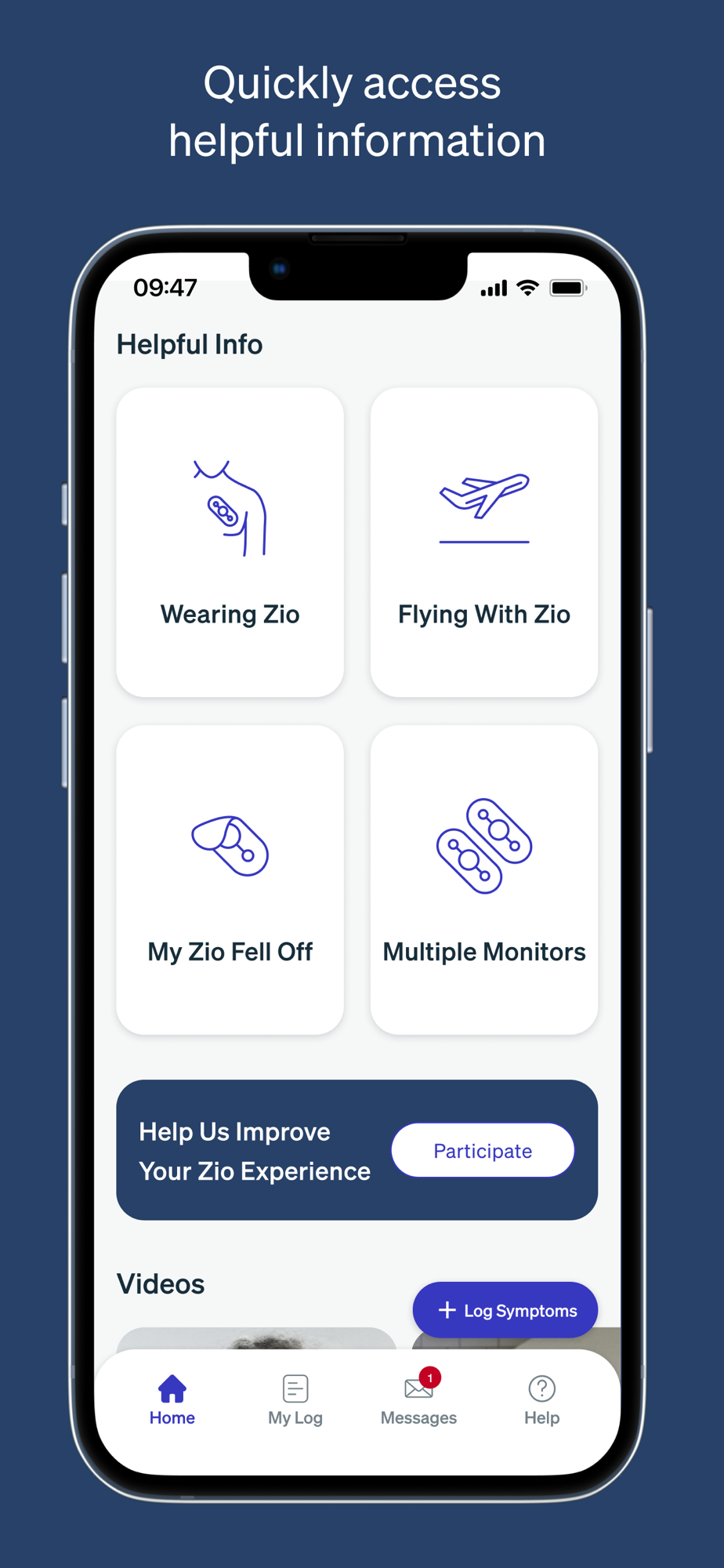 • Seamlessly register your Zio ECG monitor and start logging symptoms.