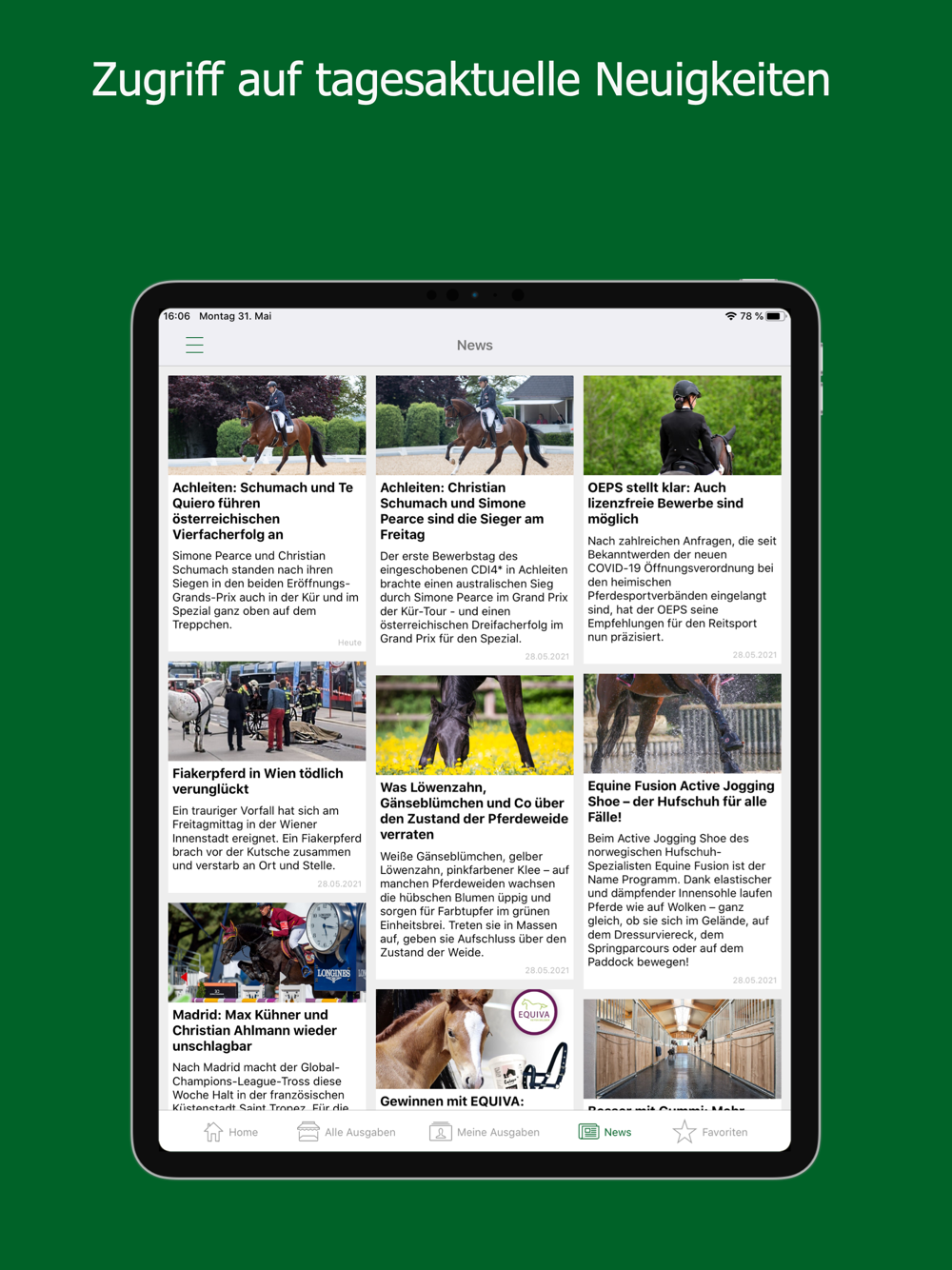 Die Pferderevue, das österreichische Magazin für Turnier- und Freizeit-Pferdesportler aller Disziplinen, für Pferdehalter und Pferdezüchter, Reitschul- und Reittourismusbetriebe – kurz: für alle, die am Thema Pferd privat oder beruflich interessiert sind, gibt es jetzt auch als E-Paper!