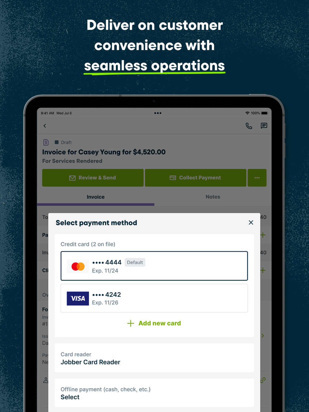 - Get paid faster with online and in-app payment processing