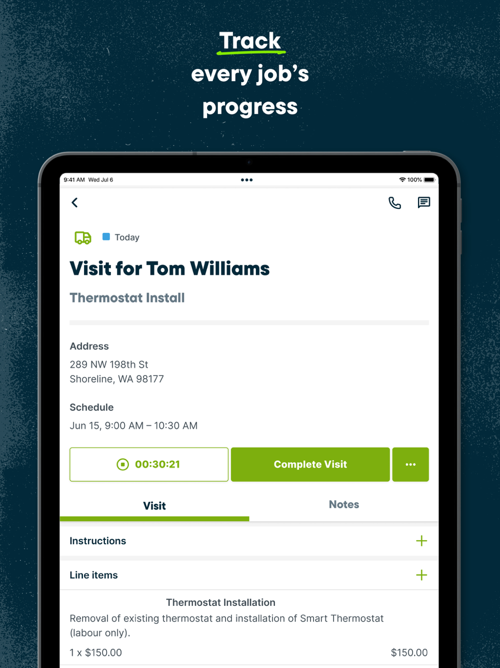The Jobber app is designed for you and your team to simply pick up and go. Run your day-to-day operations from anywhere and watch the job get done faster when your team's organized and your process is streamlined.