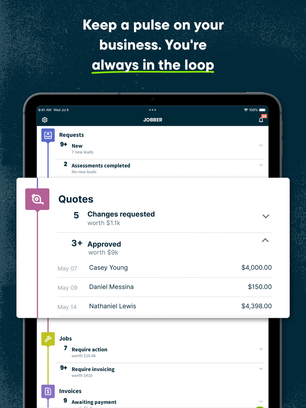 Jobber is your business' command center. Our easy-to-use app powers your sales, operations, and customer service—all in one place.