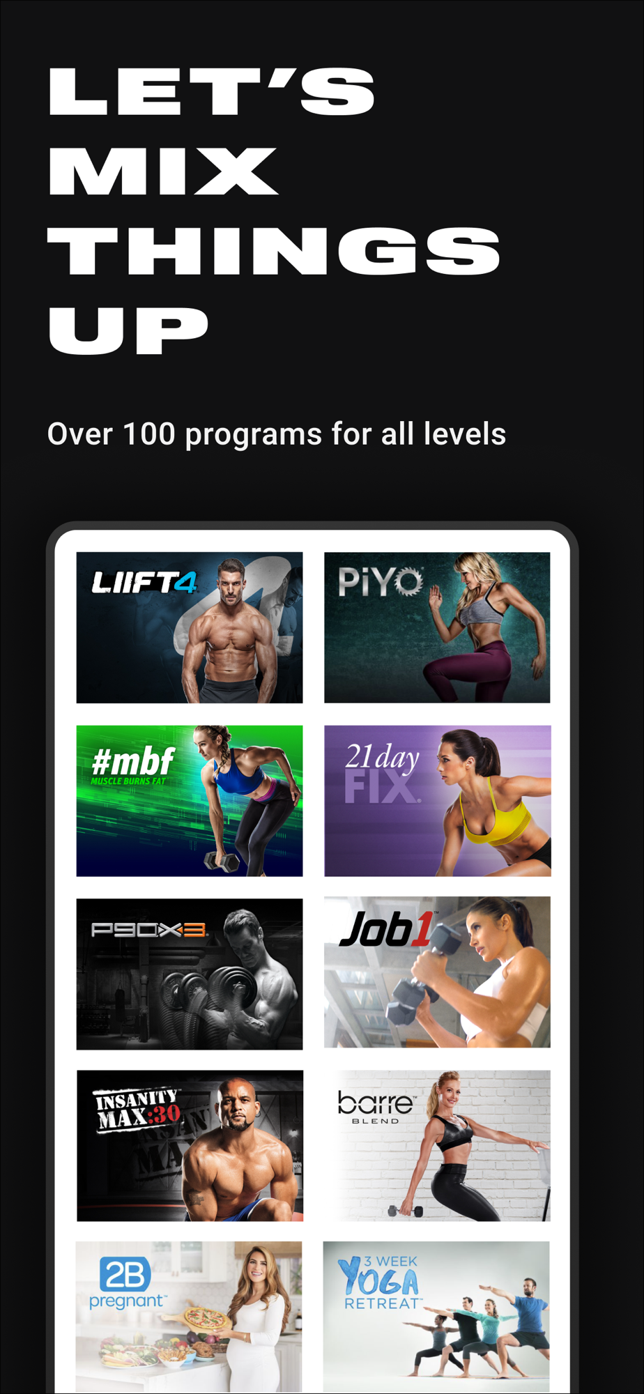 • Stream thousands of workouts plus programs like P90X, 21 Day Fix, and Sure Thing