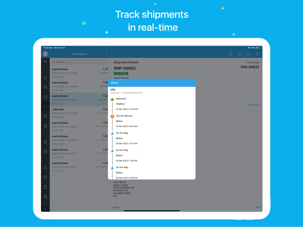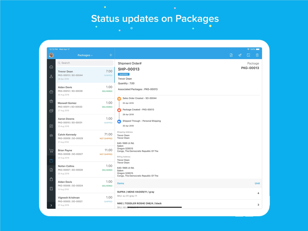 Order fulfilment - Create package slips, shipping labels and send real-time shipment updates to your customers.