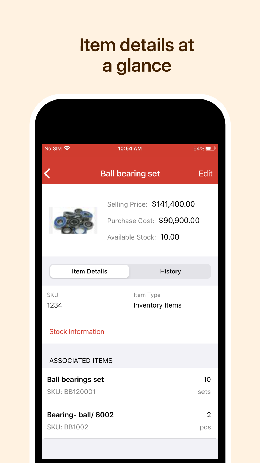 Inventory management - Create and manage your items along with their images. You can categorize items into groups and keep track of your bundles right from the inventory app.