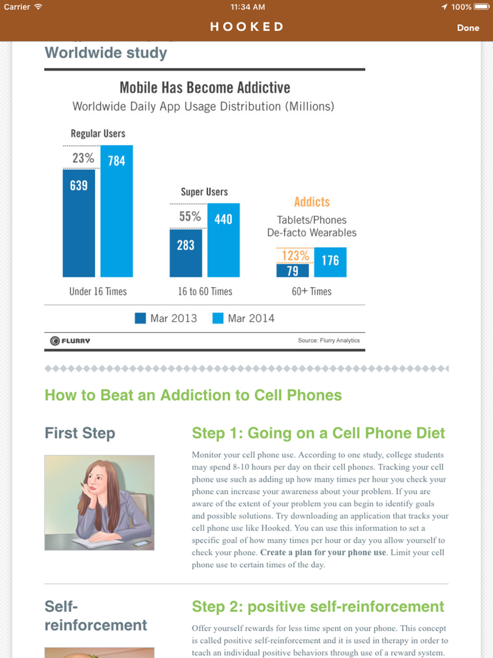By giving you insight into your phone checking habit, Hooked helps you become more aware. This awareness can help you make changes to your phone usage.