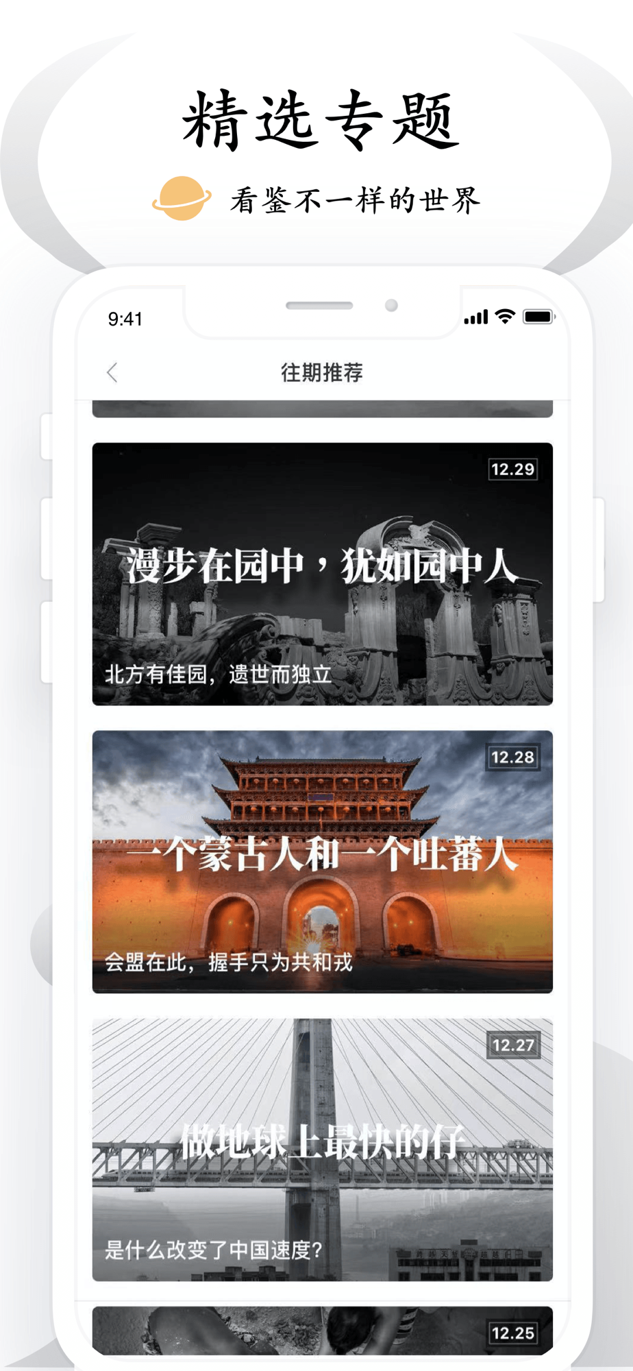 “看鉴微视频”内容涵盖人文、历史、地理、自然、科学、文化等领域的热门纪录片和趣味短视频,让您在娱乐身心的同时扩充知识储备,开阔眼界视野。