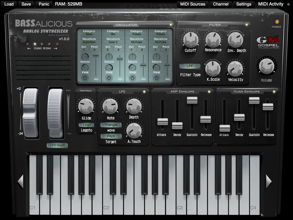 Dedicated monophonic synth bass synthesizer featuring the NEW iOS AudioUnit Version 3 plugin architecture.